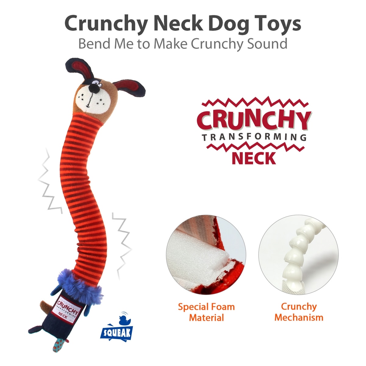 • Features a crunchy transforming neck that crackles when bent, stretched, or shaken to spark your dog’s natural curiosity.