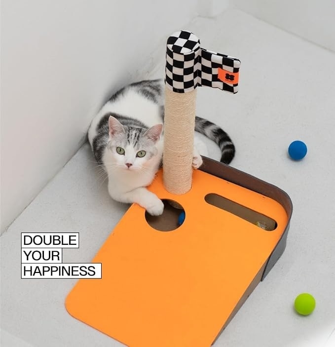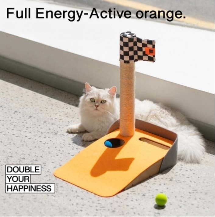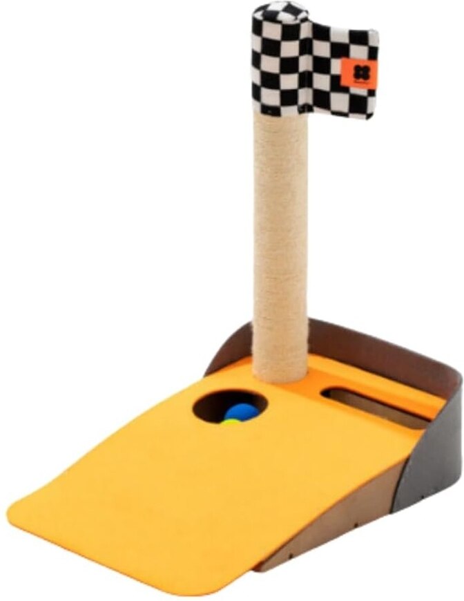 EYS Golf-Themed Scratching Post & Interactive Ball Track Cat Toy with Catnip, Orange