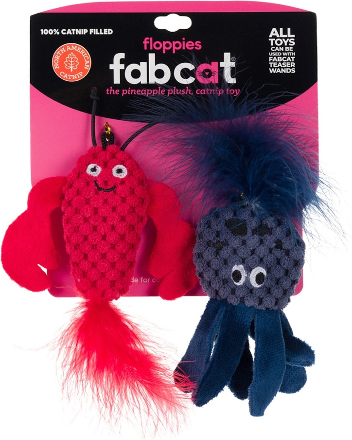 Fabcat Lobster & Octopus Floppies Chew Cat Toy with Catnip, Multicolor, 2 count