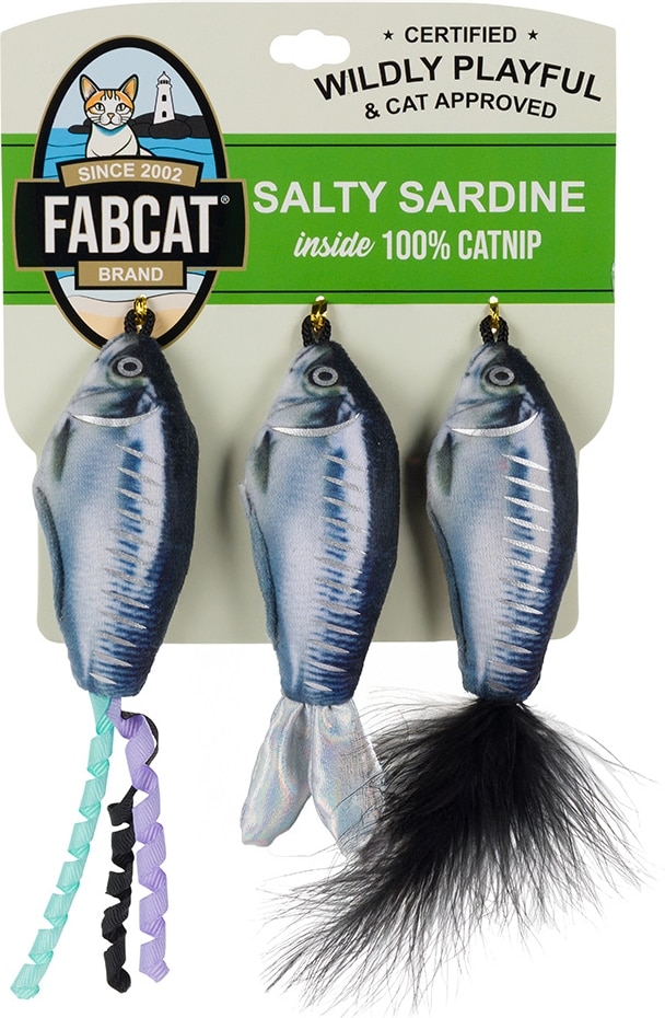Fabcat Salty Sardines Foodie Chew Cat Toy with Catnip, Silver, 3 count