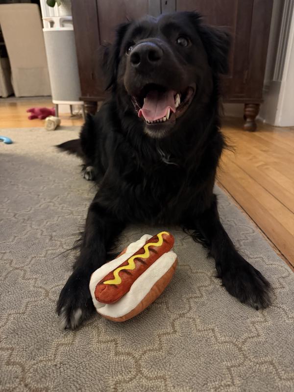 Trying to find a replacement for the Frisco Hot Dog toy. We play throw and fetch hot dog every day and he loved this hot dog too. The actual hotdog has places at the ends where he could dig up under it to try to pull the hotdog away from the bun. He worked on it enough that it exposed the squeaker and had to be thrown away. Mac has never been a chewer or destroyer with his toys.