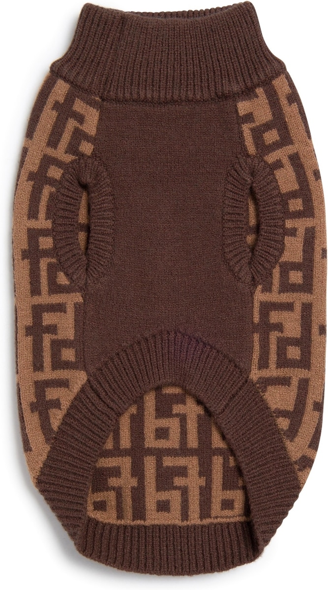 fabdog Monogram Graphic Dog Sweater, Brown, 22-in