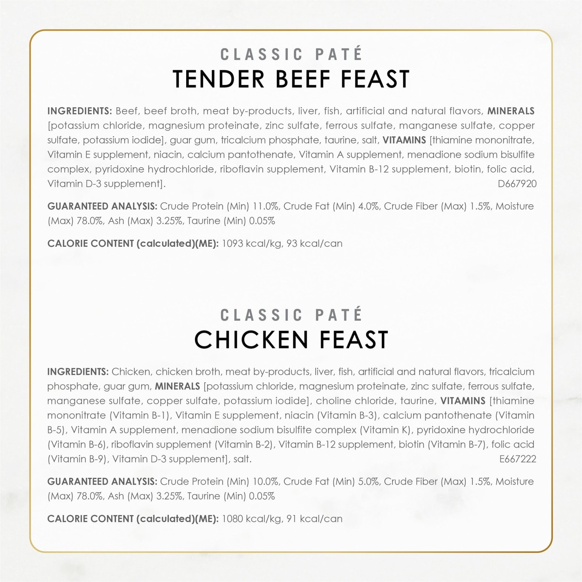 Fancy Feast Classic Collection Chicken & Beef Pate Variety Pack Canned Cat Food, 3-oz can, case of 24