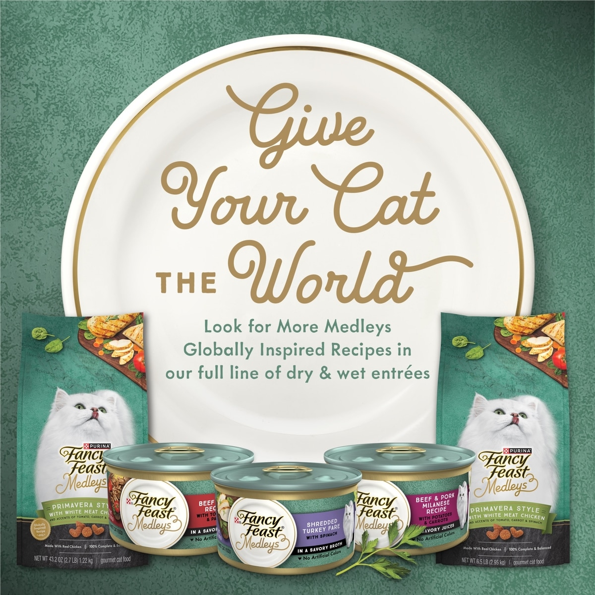 - DealFancy Feast Medleys Primavera Collection Adult Chicken Turkey & Tuna Variety Pack in Broth Gourmet Wet Cat Food, 3-oz, case of 12$14.04 Chewy Price$15.48 List Price$13.34 Autoship PricePromo, Spend $100, Get $30 eGift Card with code NEWYEAR +1 deal
