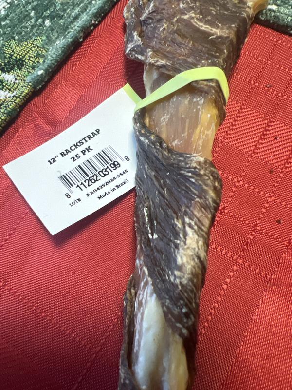 Please provide plenty of fresh water when giving any chew or treat. Because this is a natural treat, its sizing, color and appearance may vary this is normal. You may also notice a natural scent and oil while your pal chews; this natural oil may stain your furniture, carpeting or other surfaces. To prevent injury and choking hazard, please watch your pet while they enjoy this treat and be sure to choose the appropriate size chew. If this product splinters or develops sharp edges, throw it away immediately for your pet's safety.