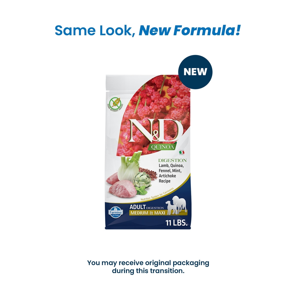 Farmina N&D Quinoa Canine Adult Digestion Lamb, Fennel & Arctic Mint Dry Dog Food, 11-lb bag