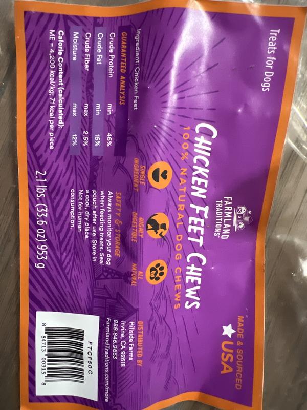Farmland Traditions 100% Large Chicken Feet Dog Chews, 2.1-lb bag