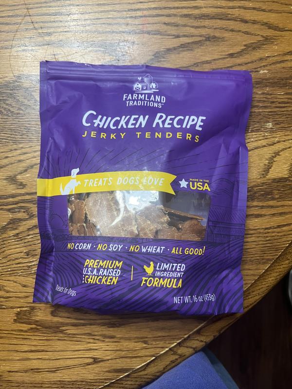 - Farmland Traditions USA Dogs Love Chicken Grain-Free Jerky Patties Dog Treats, 32-oz bagRated 4.7 out of 5 stars4.7218Reviews$28.99 Chewy Price$28.99$34.99 List Price$34.99$27.54 Autoship Price$27.54Promo, New Customers Only: Spend $49+, Get $20 eGift Card +1 deal