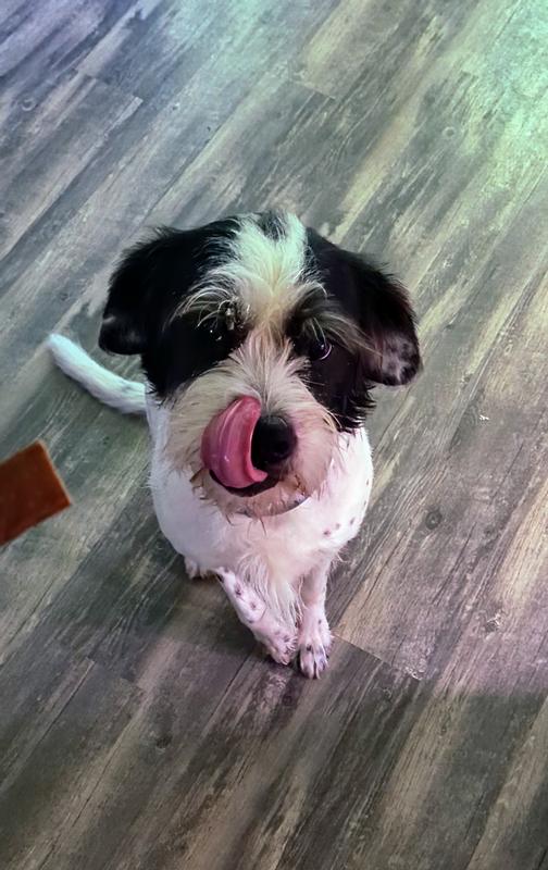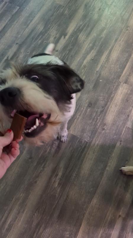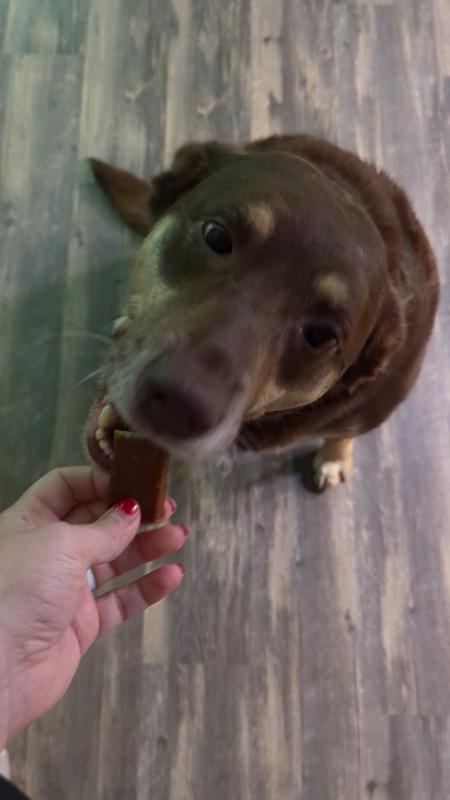 My dog really likes this product, the size was just right. I really enjoyed the nice smoke smell and appreciate how much he will listen to me when I use it as a bribe. We haven’t used it long enough to see if it helps his skin and coat but I can say it definitely hasn’t hurt it.