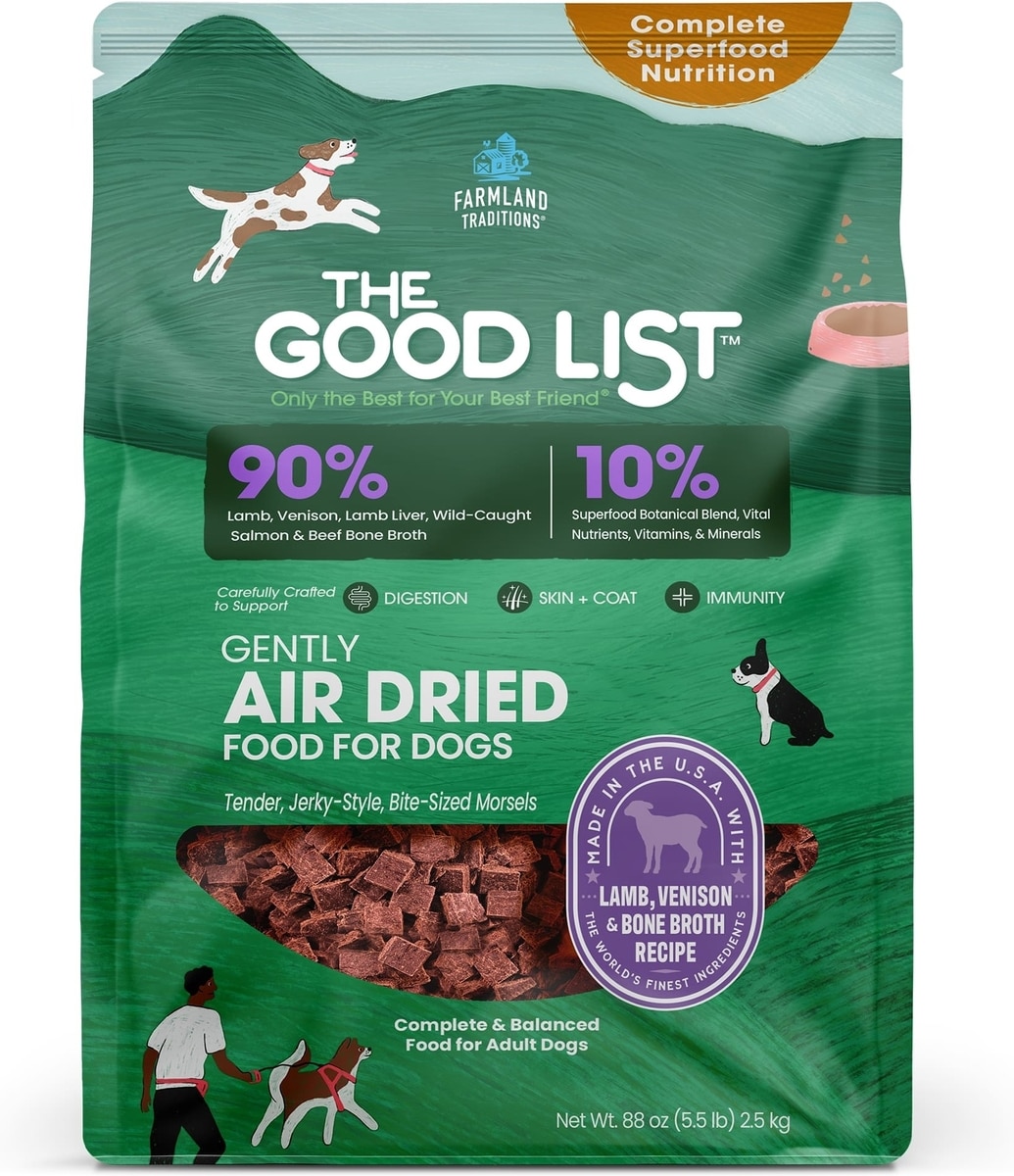 Farmland Traditions The Good List Lamb, Venison & Bone Broth Recipe Adult Gently Air-Dried Dog Food, 5.5-lb bag