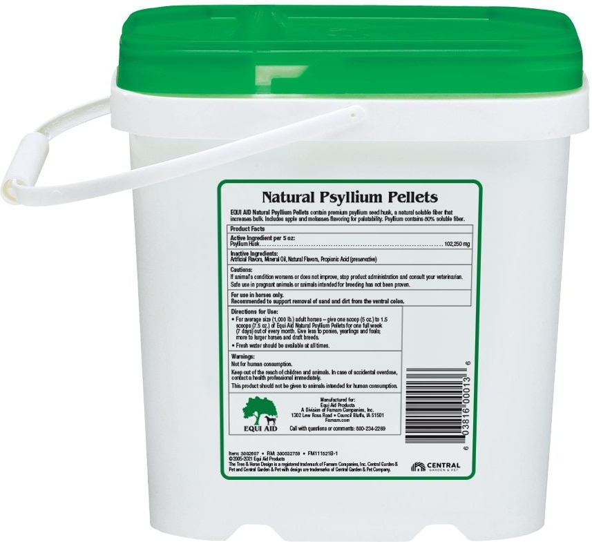 Farnam Equi Aid Natural Psyllium Fiber Pellets Apple/Molasses Flavor Horse Supplement, 5-lb bucket