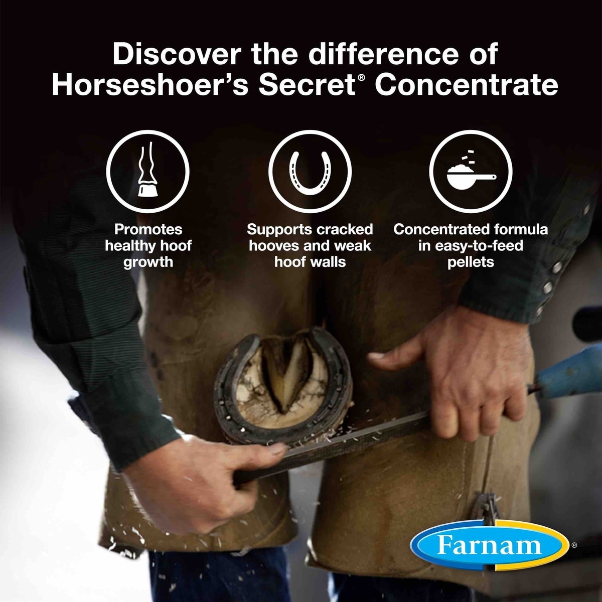 Revolutionize Your Hoof Care Routine Horseshoer's Secret, Horseshoer's Secret Concentrate and Horseshoer's Secret Extra Strength supplements provide key ingredients that help promote healthy hoof growth, maintain normal hoof walls and support cracked hooves.
