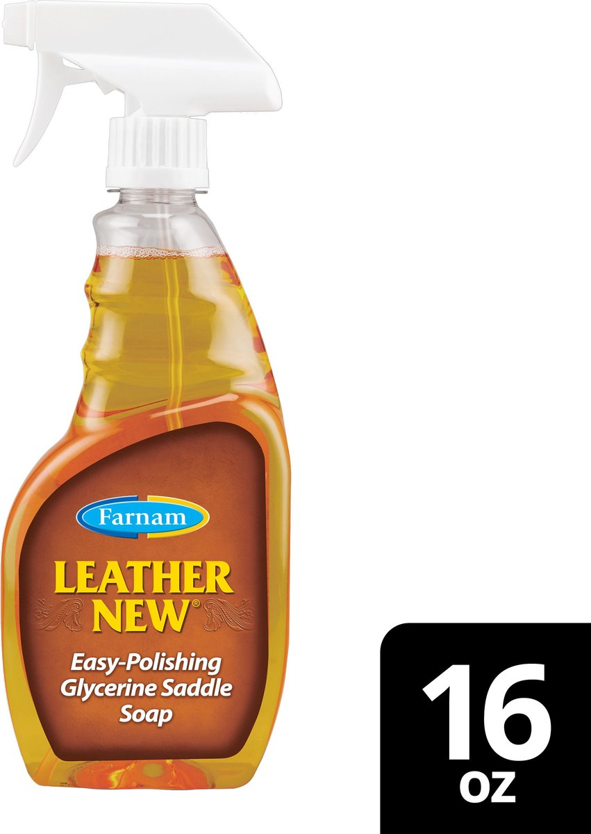 Keep Your Favorite Leather Looking New Leather New Easy-Polishing Glycerine Saddle Soap makes leather look like new with a single application. It cleans, conditions and polishes, removing embedded dirt and attracting moisture, and it dries to a long-lasting shine.