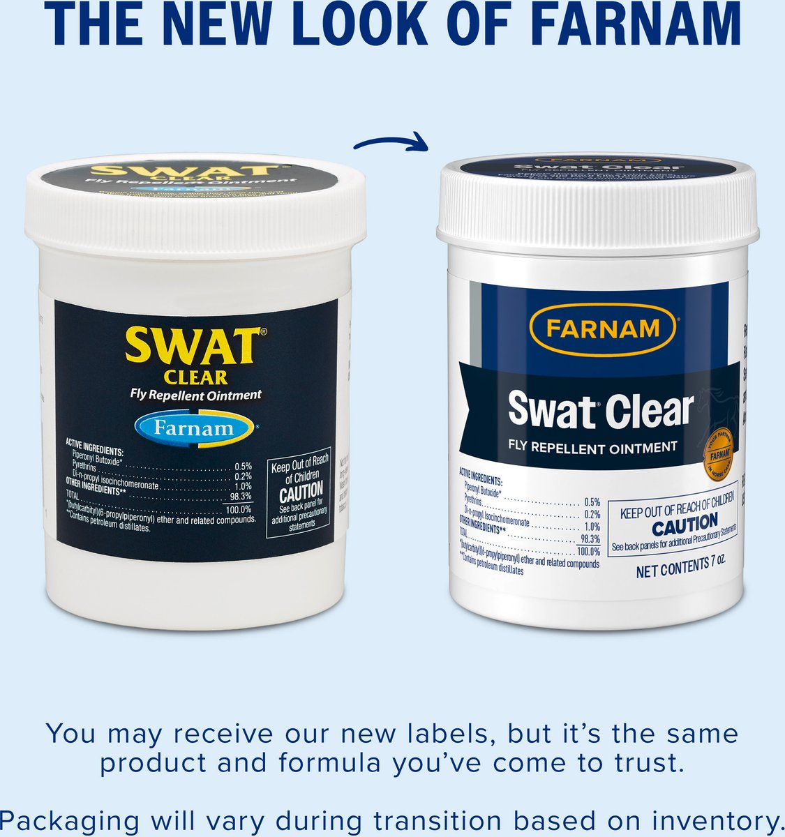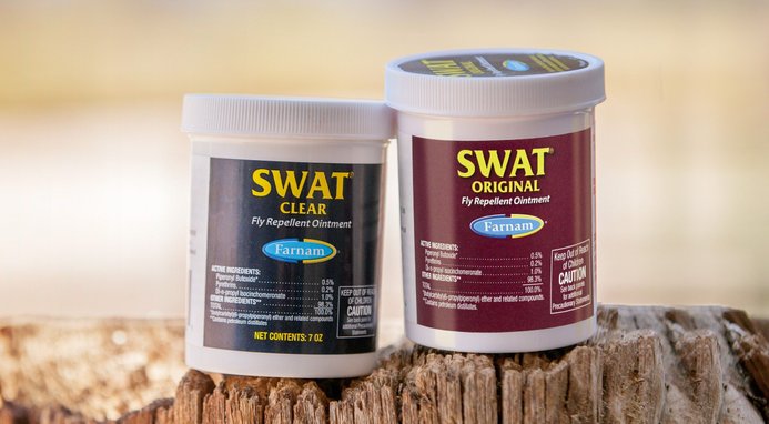 Application is simple and easy. Simply apply a light dab of ointment around the targeted area, taking care not to directly contact the wound, eyes, or ears. A little bit of SWAT Fly Repellent Ointment goes a long way, so you can apply it daily for effective control against house, stable, face, and horn flies.