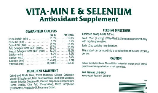 Vita Plus Balanced Multi-Vitamin & Mineral Supplement is formulated to provide a strong nutritional foundation for health and performance. Vita-Min E & Selenium supplement provides antioxidant support to help keep horses in peak condition.