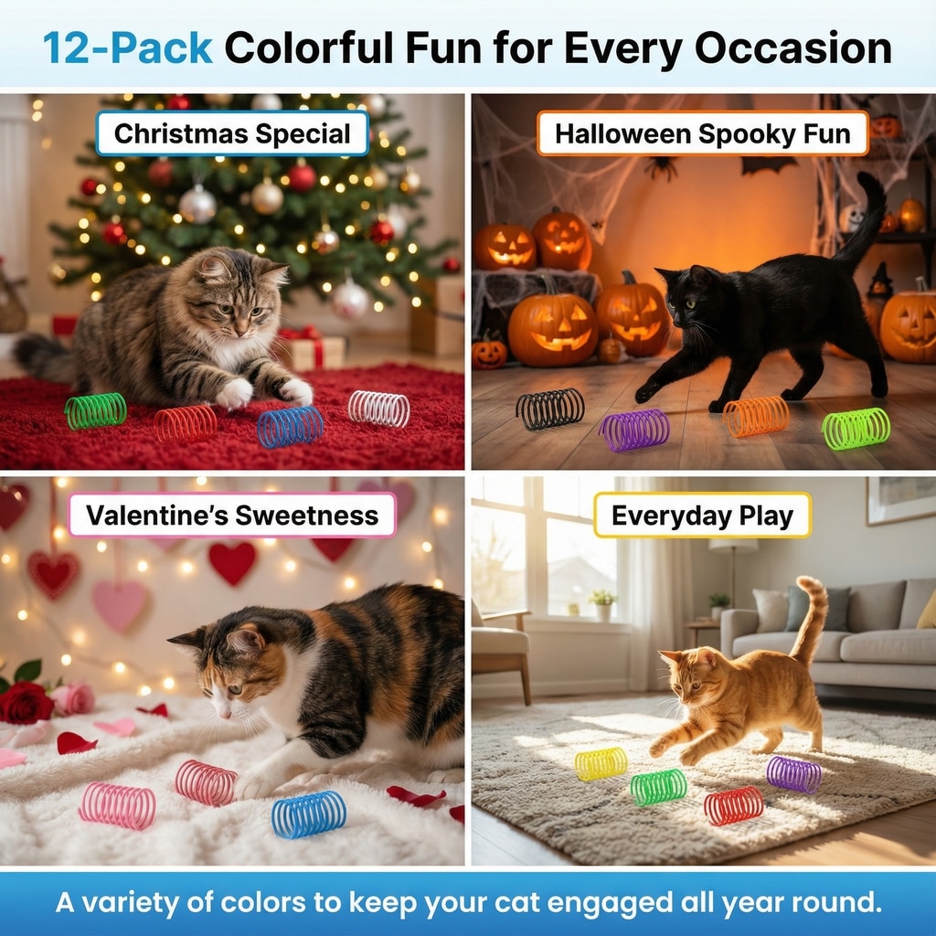 These springs feature vibrant colors to help keep your cat curious and engaged, preventing boredom while making them easy to spot on carpets or under the sofa.