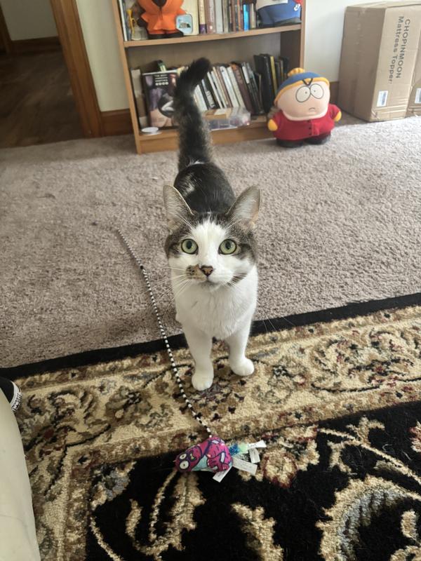 He carries these toys around in his mouth and literally just places them down in front of me demanding I play with him. I don’t think he’s ever cared about a toy I’ve bought him even a fraction of the amount he cares about these. Just do your cat a solid and get them one (or a few) of these.