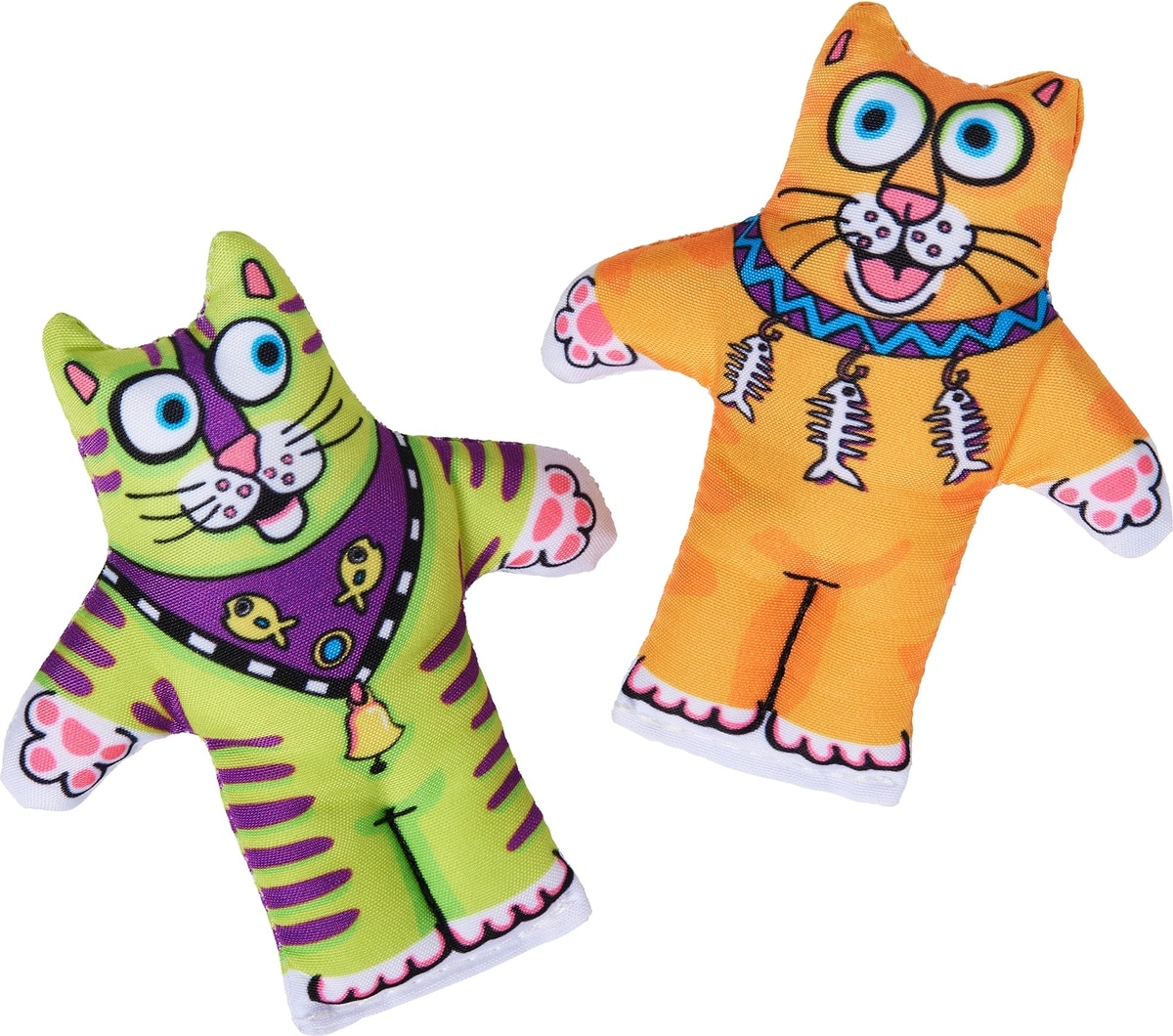 This little Fat Cat cat toy is so cute. It's the perfect size toy for cats, and the color and animation on the face area of it is adorable. It smells good too which is probably the catnip in it but its not an overpowering scent its actually a nice fresh scent. My cat loves playing with it all time. He walks around the house with it sticking out of his mouth Definitely a good cat toy that is not to expensive and affordable and durable as well. Good choice give it a try.