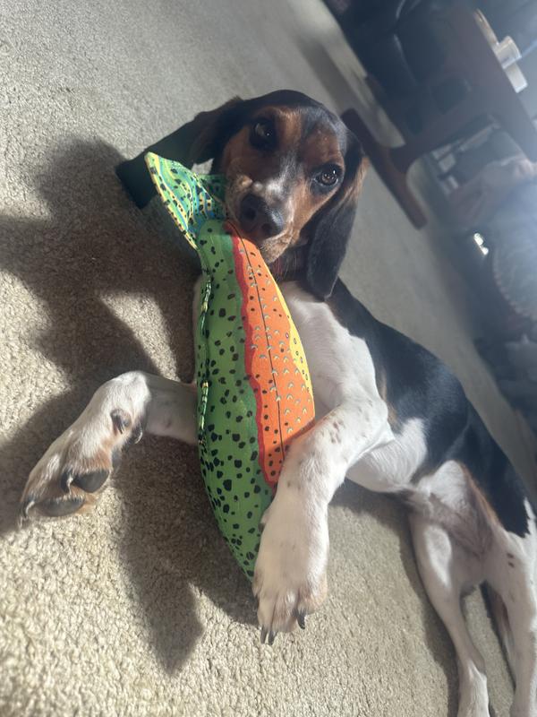 Hardly any toy last long with our boxer. We try to keep an extra Fat Cat trout in reserve. It has become one of his staple toys.