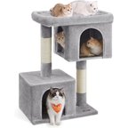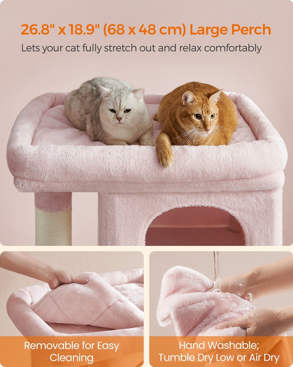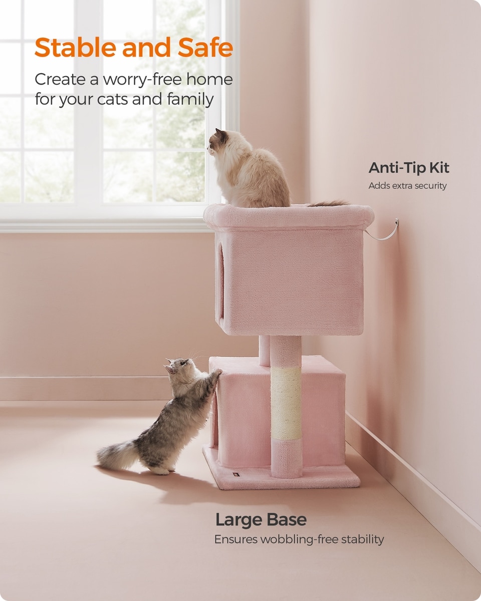 FEANDREA 39.8-in Heavy-Duty Plush Cat Tree Tower & Condo with Large Perch, 2 Cat Caves & Scratching Post, X-Large, Jelly Pink