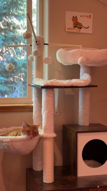 FEANDREA Modern 54.3-in 2-in-1 Plush Cat Tree & Condo with Litter Box Enclosure, Cloud White