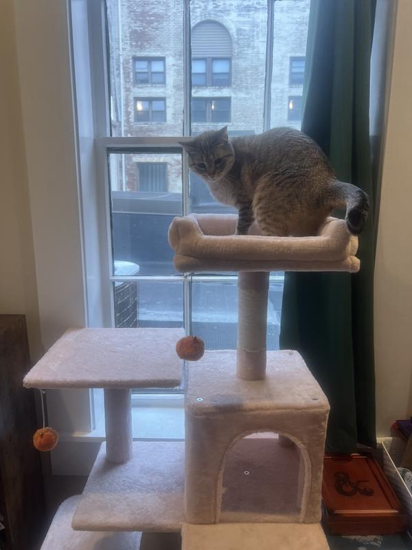My kitten loves it!! Jumps, climbs, scratches and sleeps cozy!! Easy to put together and sturdy. Great Purchase
