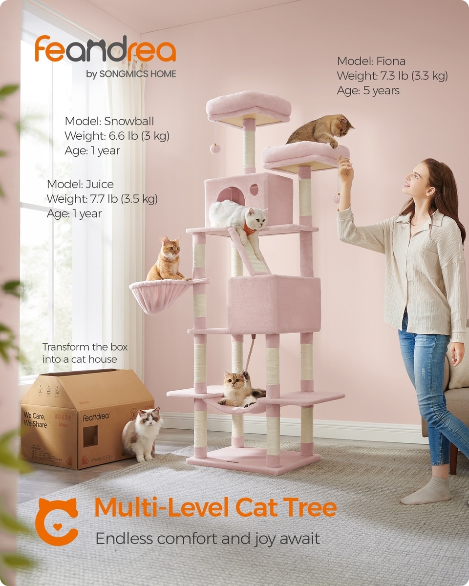 FEANDREA Multi-Level 81.1-in Plush Cat Tree & Condo, Jelly Pink
