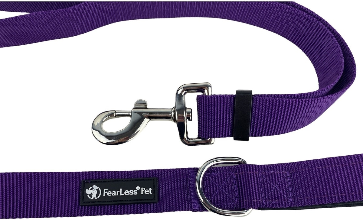 FearLess Pet Padded Handle Adjustable Dog Leash, Purple, Medium/Large