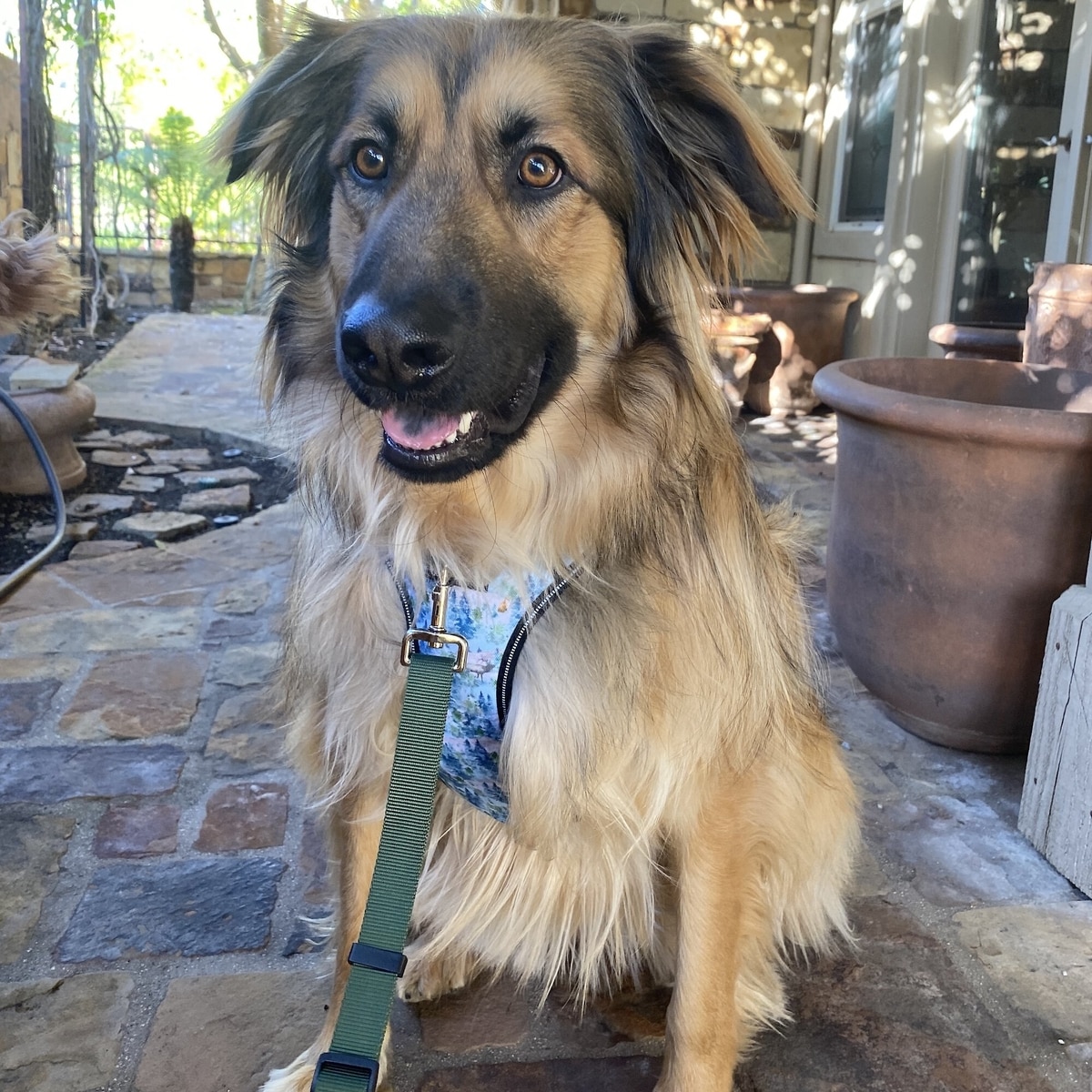 Easily adjustable. D ring to attach poopbag holder. Cushy handle