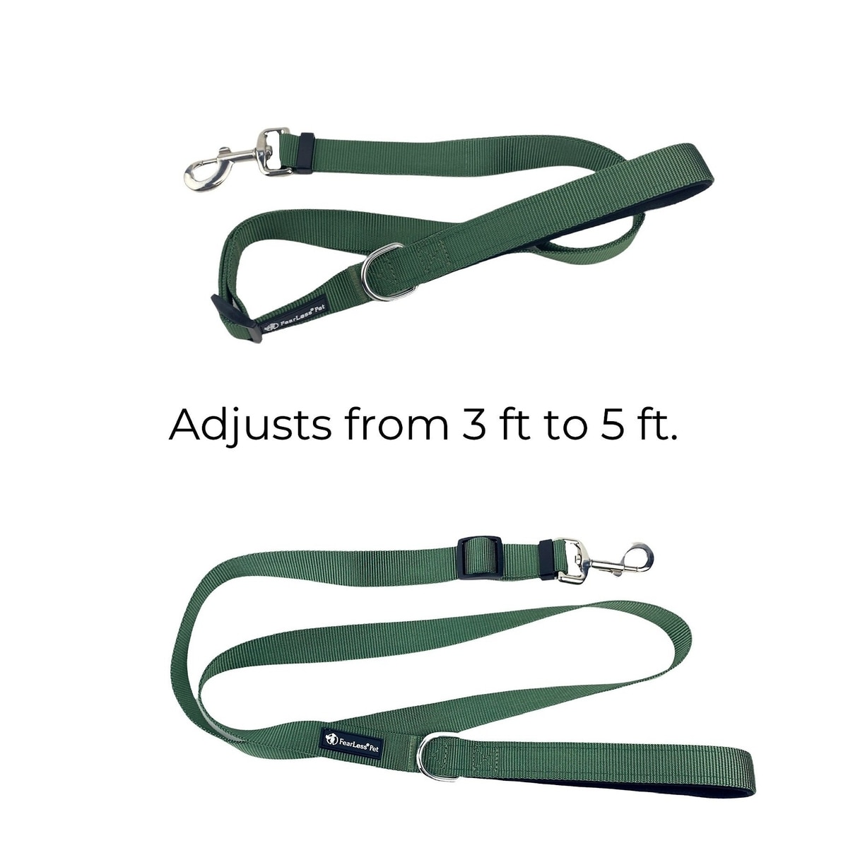 FearLess Pet Padded Handle Adjustable Dog Leash, Forest Green, Small/Medium