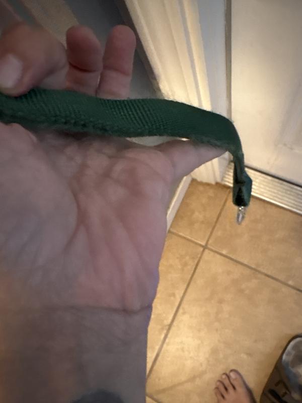 Once I adjusted the leash to the desired length, by sliding it through the plastic piece the leash started to fray. I hadn’t even used it yet.