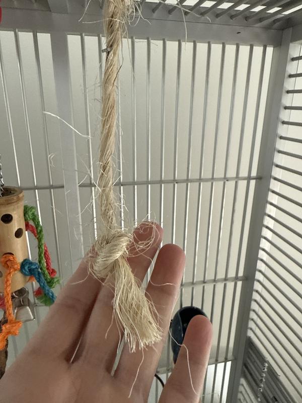 We have purchased this toy several times, to the point that we called it “Ernesto” because our 13-year old Sun Conure loved it so much. Unfortunately, we never noticed that the top the sombrero is poorly secured to the rope used for hanging it. The toy fell with our Sun Conure on top and she is currently on her third day in the hospital, is lethargic and in pain, and is pending an xray for internal trauma. This has never happened with another toy in the 13 years we’ve had our Sun Conure. Most of the other toys are secured my metal, plastic, or several layers of knots. We made a bad assumption that this toy was also assembled that way. Sadly our bird may not recover because of this toy. We recommend to others DO NOT place this toy in a hanging position. Place it so the bottom of the toy is touching the bottom of the cage and watch the sumbrero and rope for any signs of deterioration.