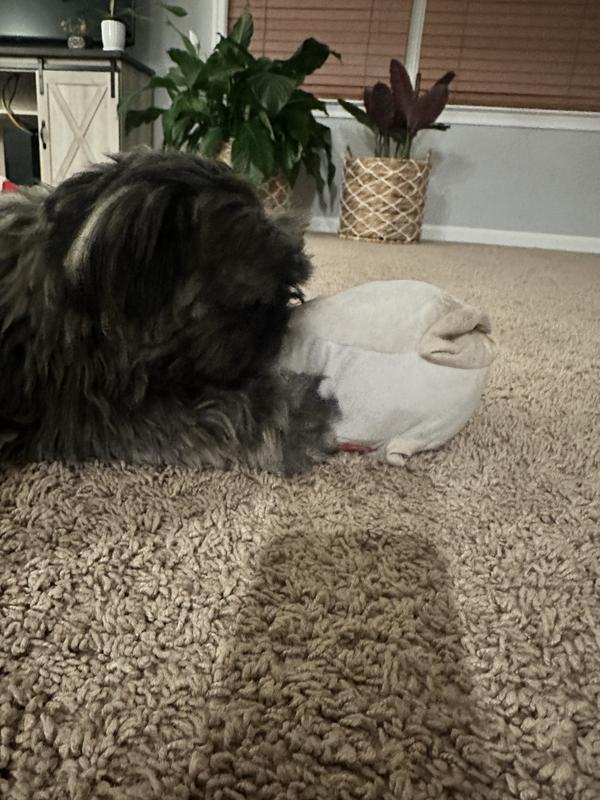 This has been my dog favorite toy ever since he was a new puppy. He's a small breed so the little waffles are the perfect size for him, they're fun to throw like a frisbee and they make a crinkle noise that he likes. But oddly, the toaster is his favorite part. He likes to chew on the corner of it or smush his face into it and sleep there like a pillow. It's his go-to toy multiple times a day and my family just calls it "toaster time" now. It's a cute toy and I hope they never stop making them because ours is getting gross from constant use and chewing and will need replaced soon lol