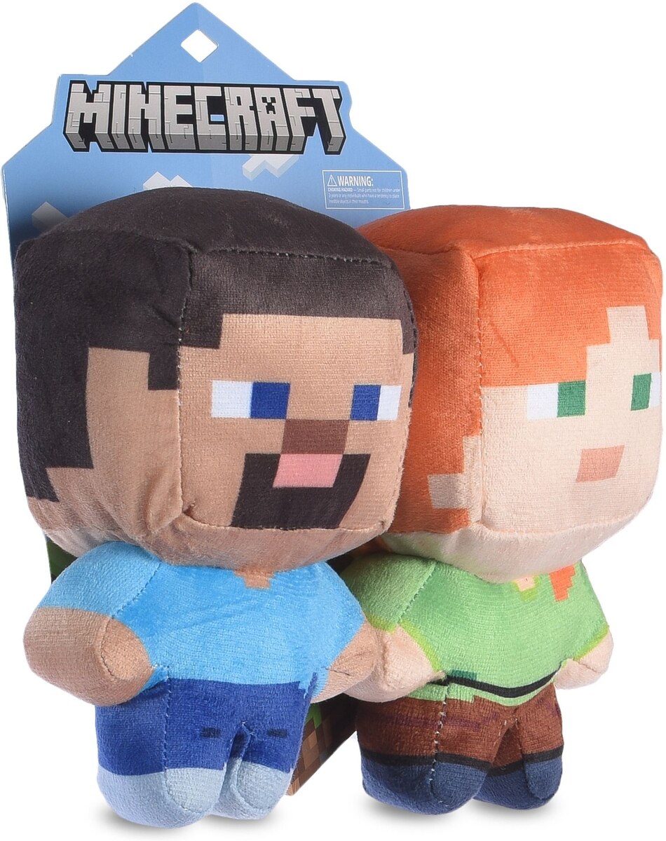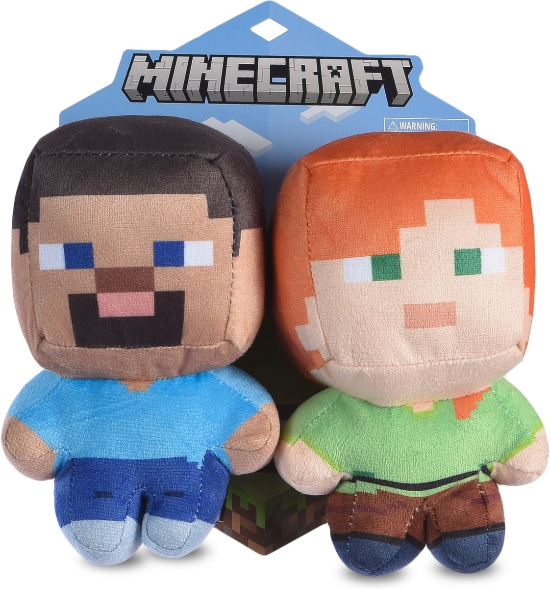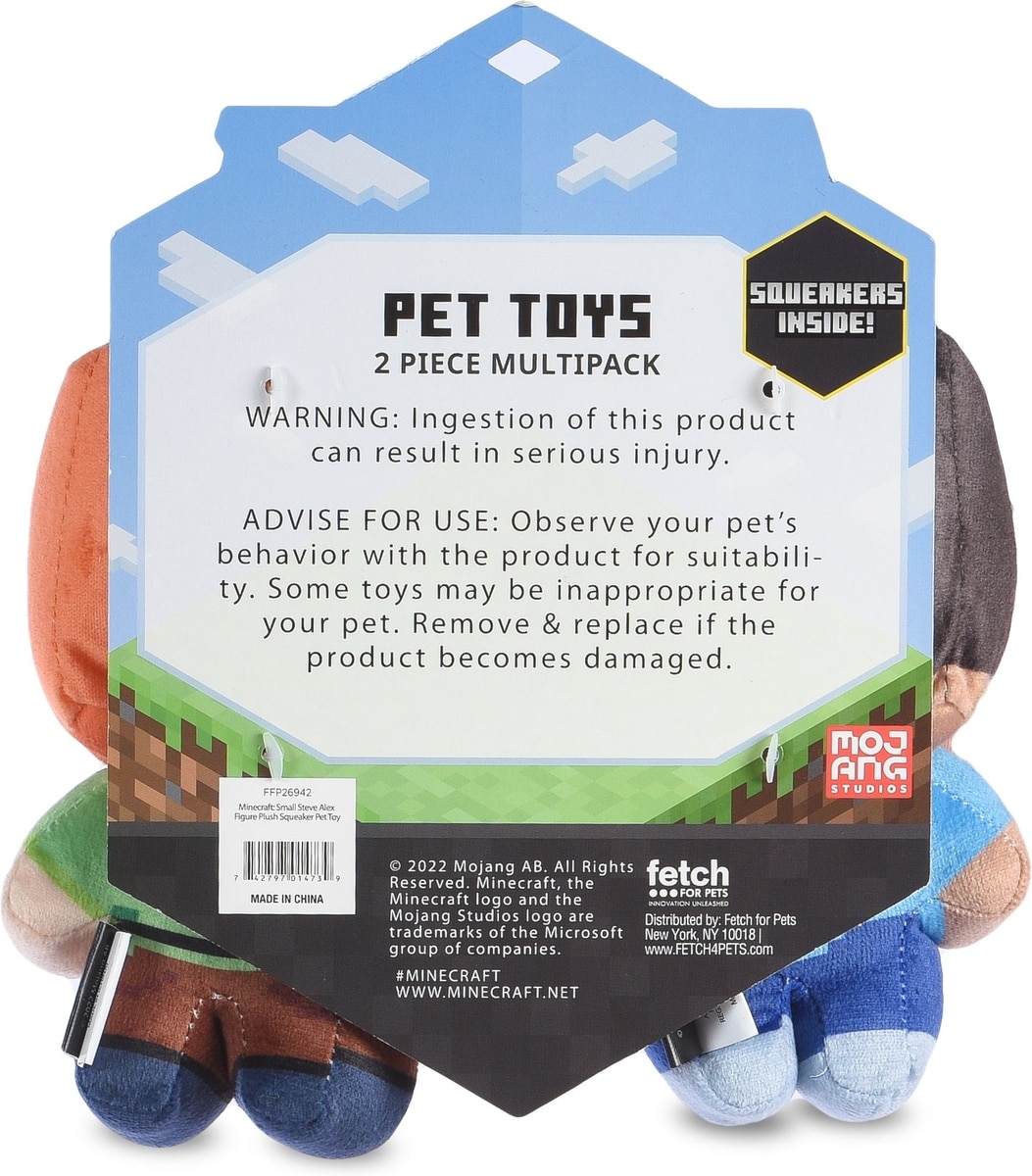 Fetch For Pets Minecraft Steve & Alex Figure Plush Squeaky Dog Toy, Small, 2 count