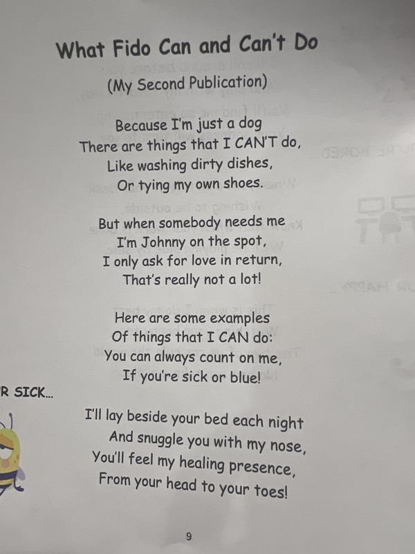 Wasn't sure what to expect, but found poems throughout the book that are written by all the dogs. It has a lot of different characters providing their stories, but got a little confusing trying to figure out who was actually speaking, and my eyes found all the typos (but, I guess if a dog was writing this......). Like the illustrations and pictures (Fido is so cute), and it was a cute read.