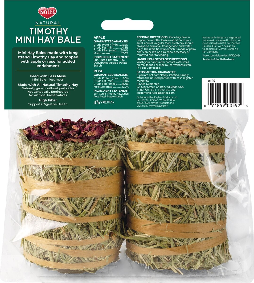 Kaytee Mini Hay Bales Apple & Rose Small Pet Hay, 7-oz bag, 2 count