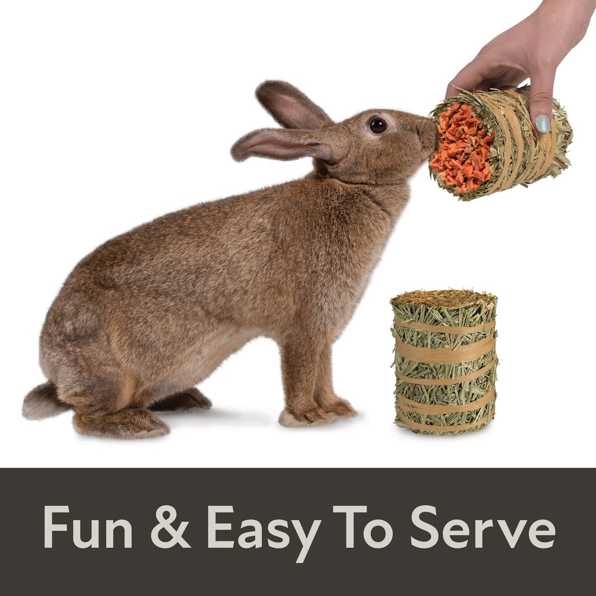 Good things come in small packages. These mini hay bales are made from all-natural timothy hay plus tasty toppings.