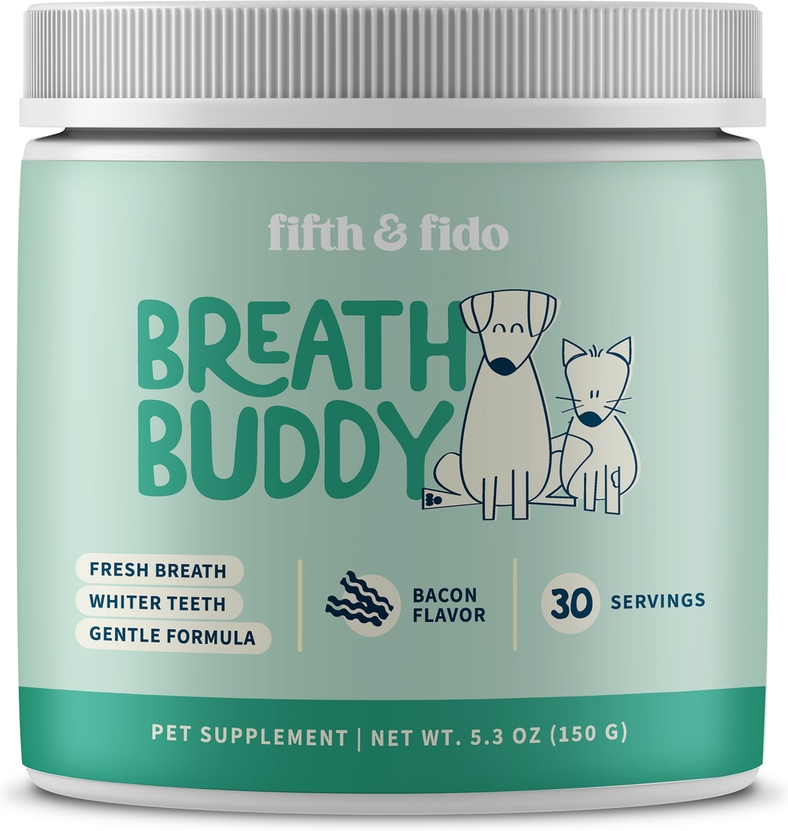 Fifth & Fido Breath Buddy Bacon Flavored Powder Dental Dog Breath Freshener Supplement, 30 servings
