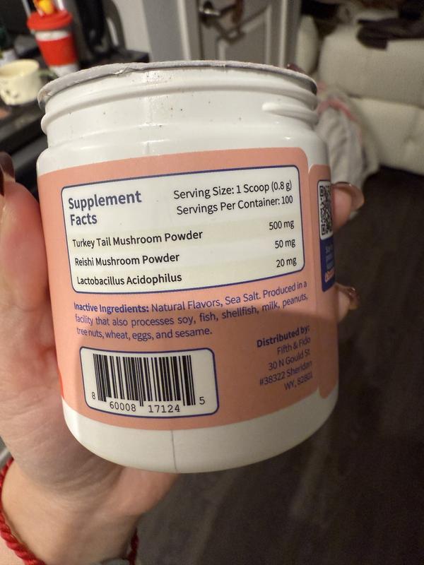 Fifth & Fido Turkey Tail+ Mushroom Bacon Flavored Dog & Cat Powdered Supplement, 2.97-oz jar