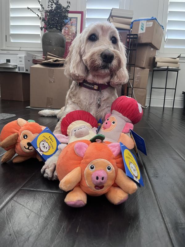 Fikas Freaky Friends Mushroom Pig Squeaky Emotional Support Plush Dog Toy, Red/Pink/White