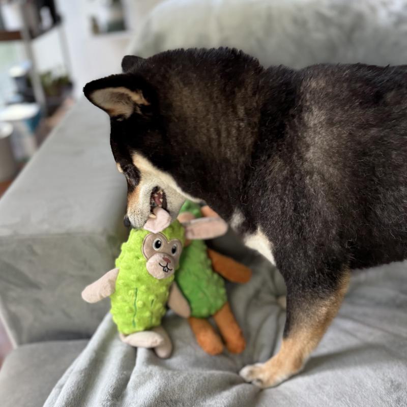 Fikas Freaky Friends Pickle Bunny Squeaky Emotional Support Plush Dog Toy, Green/Grey