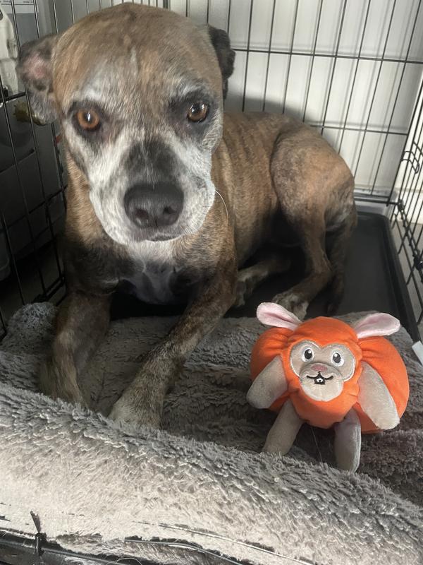 Fikas Freaky Friends Pumpkin Bunny Squeaky Emotional Support Plush Dog Toy, Orange/Grey