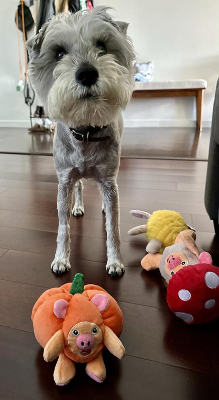 Fikas Freaky Friends Pumpkin Pig Squeaky Emotional Support Plush Dog Toy, Orange/Pink
