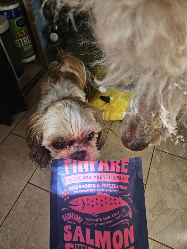 - DealFinfare Smoked Salmon Crumbles Freeze-Dried Dog Treat & Food Topper, 9-oz bag$29.99 Chewy Price$28.49 Autoship PricePromo, Spend $100, Get $30 eGift Card with code NEWYEAR