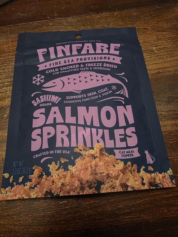 Finfare Smoked Salmon Sprinkles Freeze-Dried Cat Food Topper, 6-oz bag