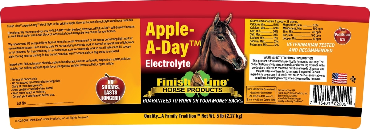 Finish Line Apple-A-Day Electrolyte Apple Flavor Powder Horse Supplement, 5-lb tub