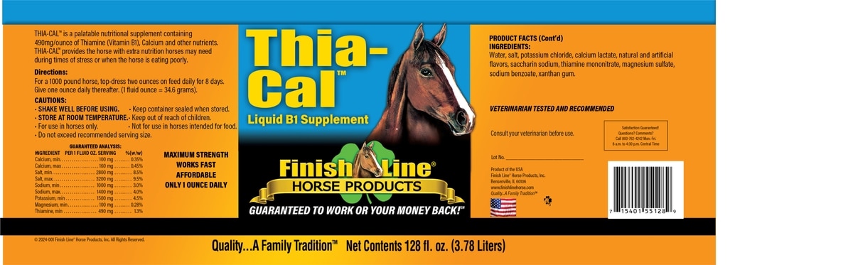 Finish Line Thia-Cal Liquid B1 Calming Liquid Horse Supplement, 128-fl oz bottle