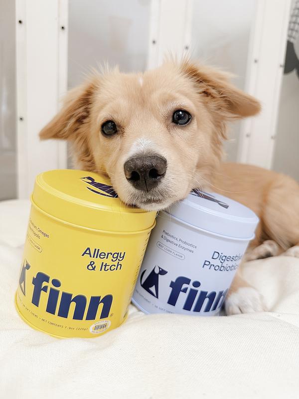 Bundle: Finn Allergy & Itch Beef Liver Flavored Soft Chew Allergy, 90 count + Digestive Prebiotic & Probiotic Supplement for Dogs, 90 count
