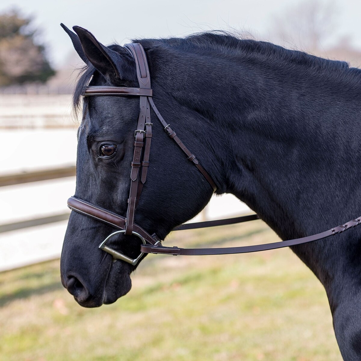 It features a stylish 1 ¼” padded noseband with a buckle guard for horse’s comfort.