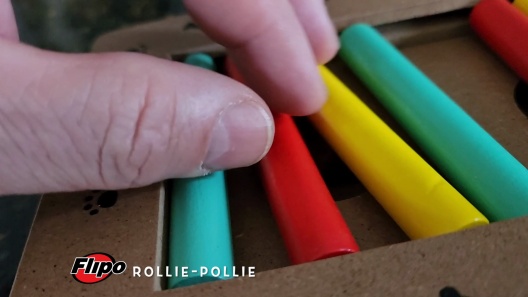 This toy features 13 colorful and rotating cylinders that hide treats.